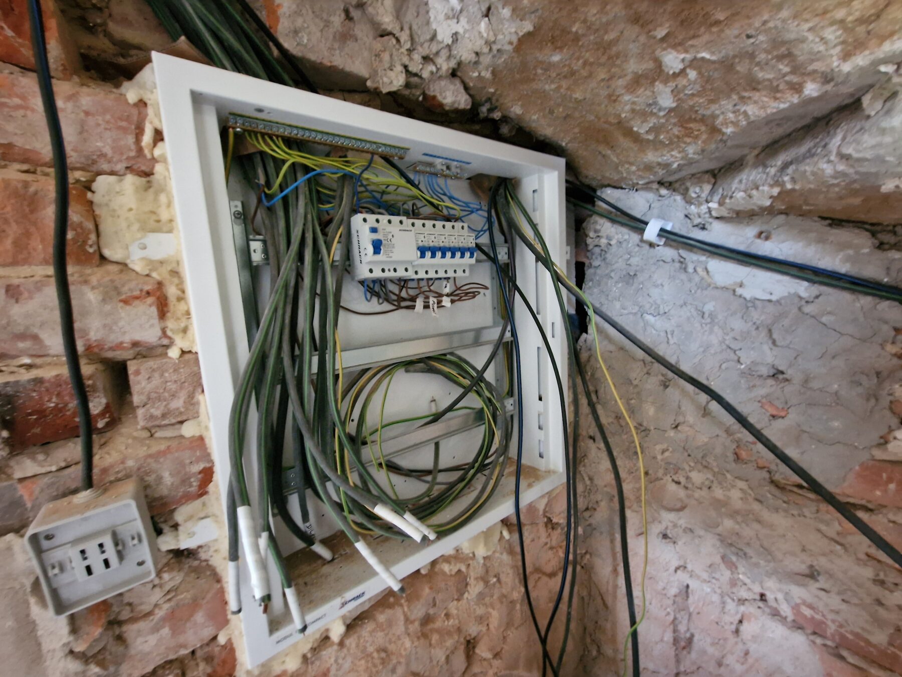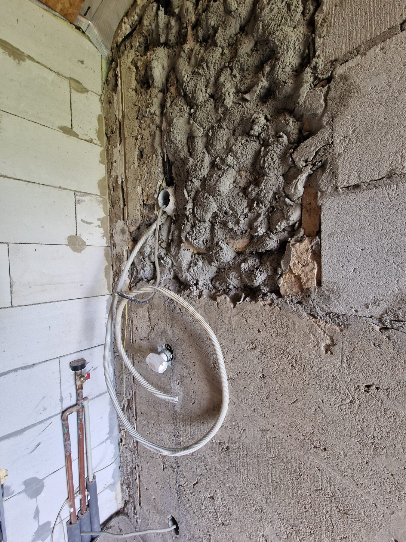 Plánována instalace elektrického kotle, kde je již také v předsíni vše připraveno na instalaci kotle. V obývací pokoji příprava na krbová kamna.